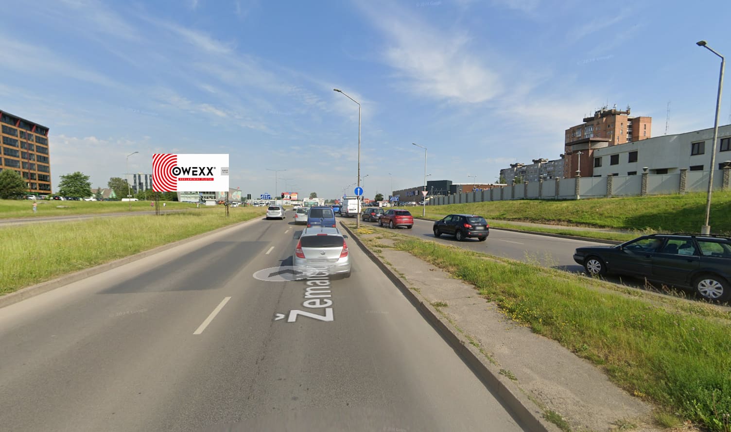 Ekranas įrengtas Žemaičių pl. 62, matomas vykstant link prekybos ir laisvalaikio centro „Mega“, Kaune